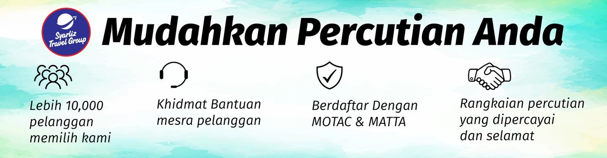 Syarliz Travel Group Sdn Bhd adalah sebuah syarikat yang berdaftar di bawah Kementerian Pelancongan (KPL/LN 8841)